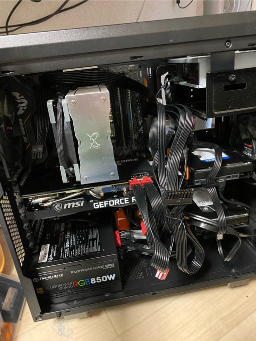 グラボ挿したけど、下の方がいいかなあ?排熱こわ、っておもったが、下は下で電源に近すぎだよな〜とりあえずこの位置で。 pic.twitter.com/2opqIdJTa4
